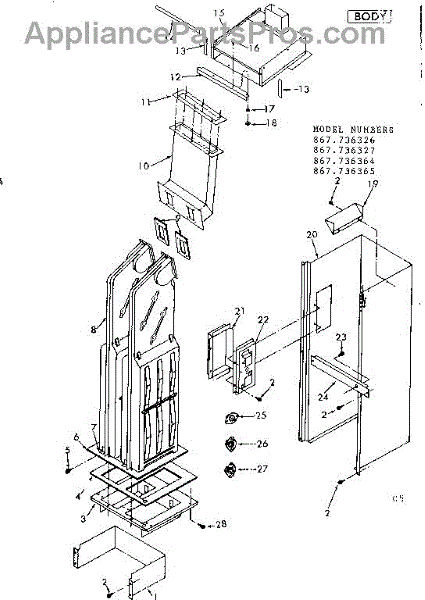 Parts for Kenmore 867.736326 (867736326, 867 736326): Body Parts