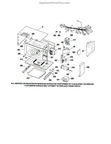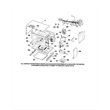 • Unplug the microwave and properly discharge the high-voltage capacitor before servicing—dangerous voltage can remain even when unplugged
