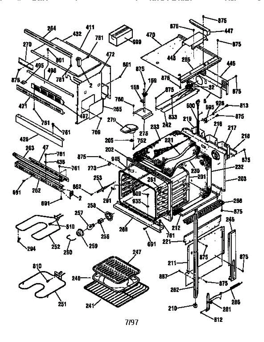 This Back main is the oven's rear chassis panel that supports internal components and protects wiring. It restores structural support and helps prevent contact with hot or moving parts for safe operation. What it does:
