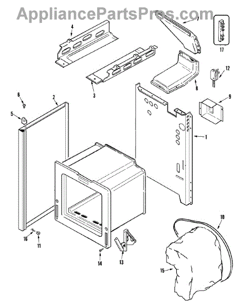 This factory screw secures appliance components to their mounting points. Replace missing, worn, or stripped hardware to restore a tight fit, proper alignment, and quieter operation across the affected assembly.