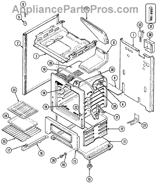 Anti-tip bracket bolts to the floor behind your range to prevent tipping. Replace if missing, bent, or damaged during moving or installation.