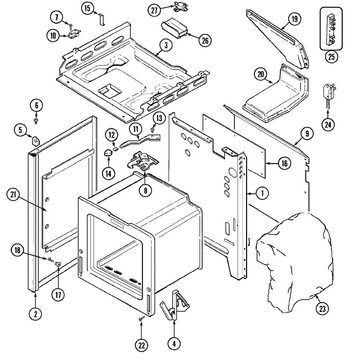 This factory screw secures appliance components to their mounting points. Replace missing, worn, or stripped hardware to restore a tight fit, proper alignment, and quieter operation across the affected assembly.