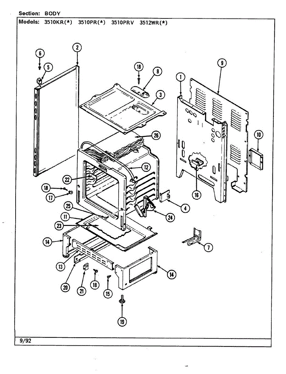 Parts for Magic Chef 3510PRA: 01 - Body Parts