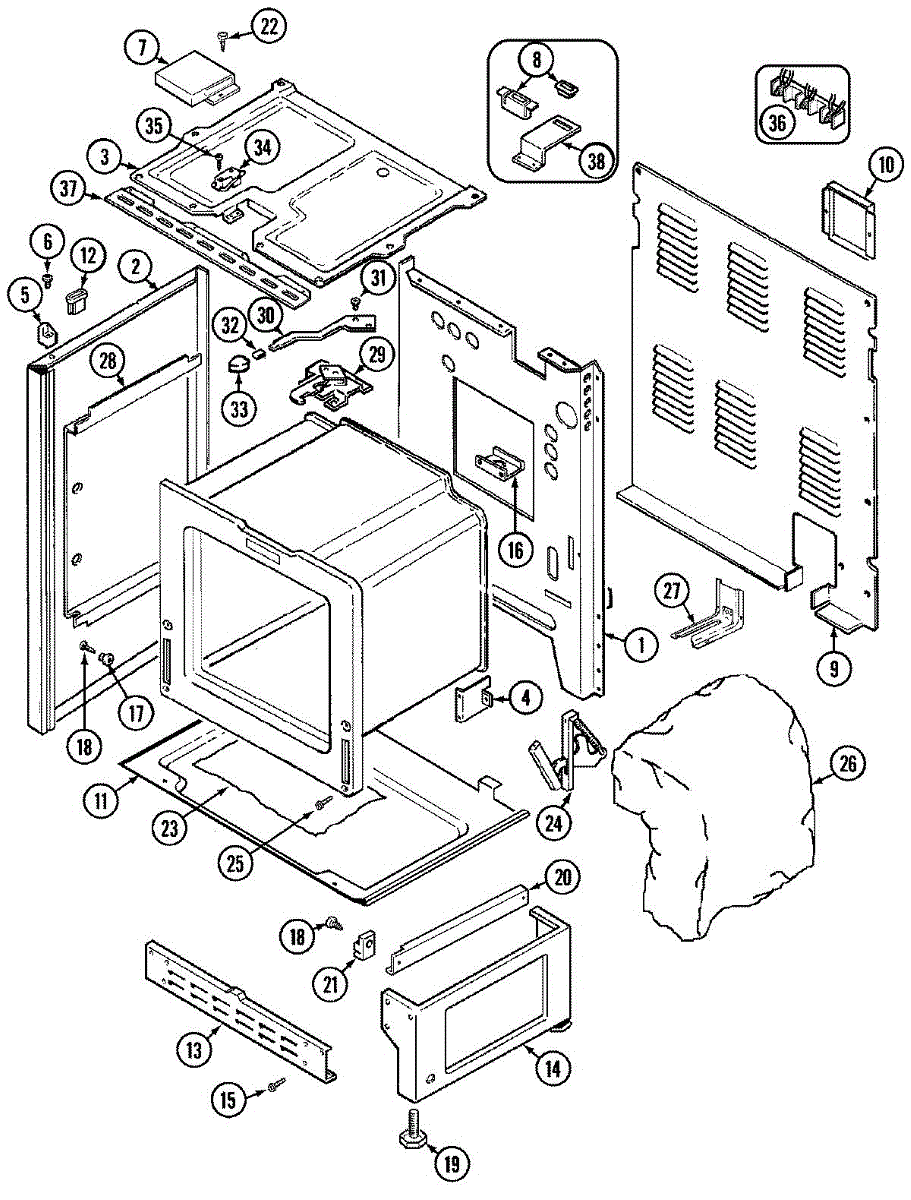 Anti-tip bracket bolts to the floor behind your range to prevent tipping. Replace if missing, bent, or damaged during moving or installation.