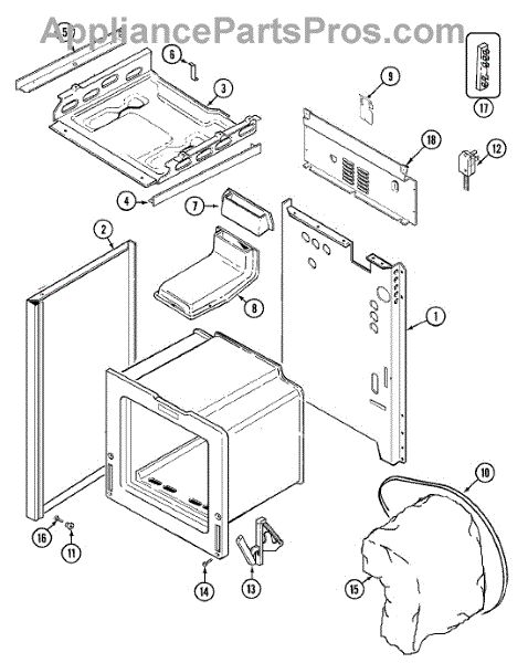 This factory screw secures appliance components to their mounting points. Replace missing, worn, or stripped hardware to restore a tight fit, proper alignment, and quieter operation across the affected assembly.