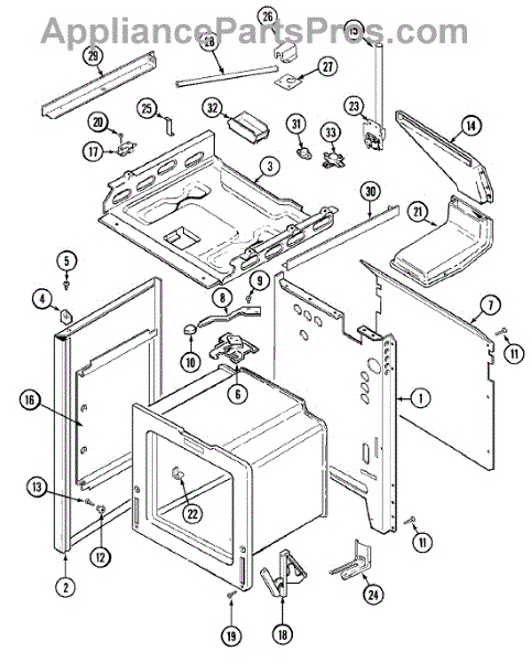 This factory screw secures appliance components to their mounting points. Replace missing, worn, or stripped hardware to restore a tight fit, proper alignment, and quieter operation across the affected assembly.