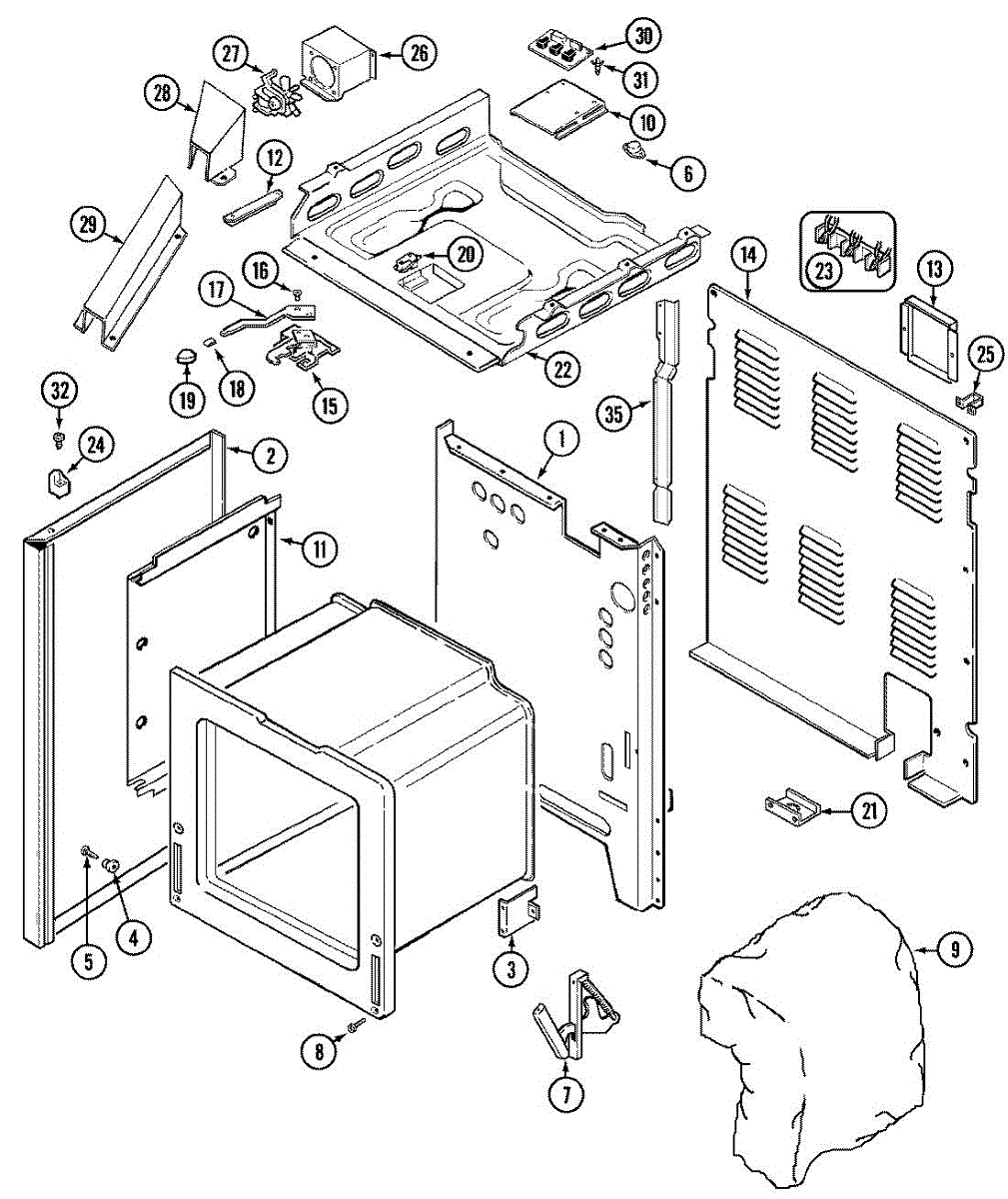 Mounting screw secures panels, brackets, and components inside your oven. Replace missing, stripped, or damaged screws to restore proper fit.