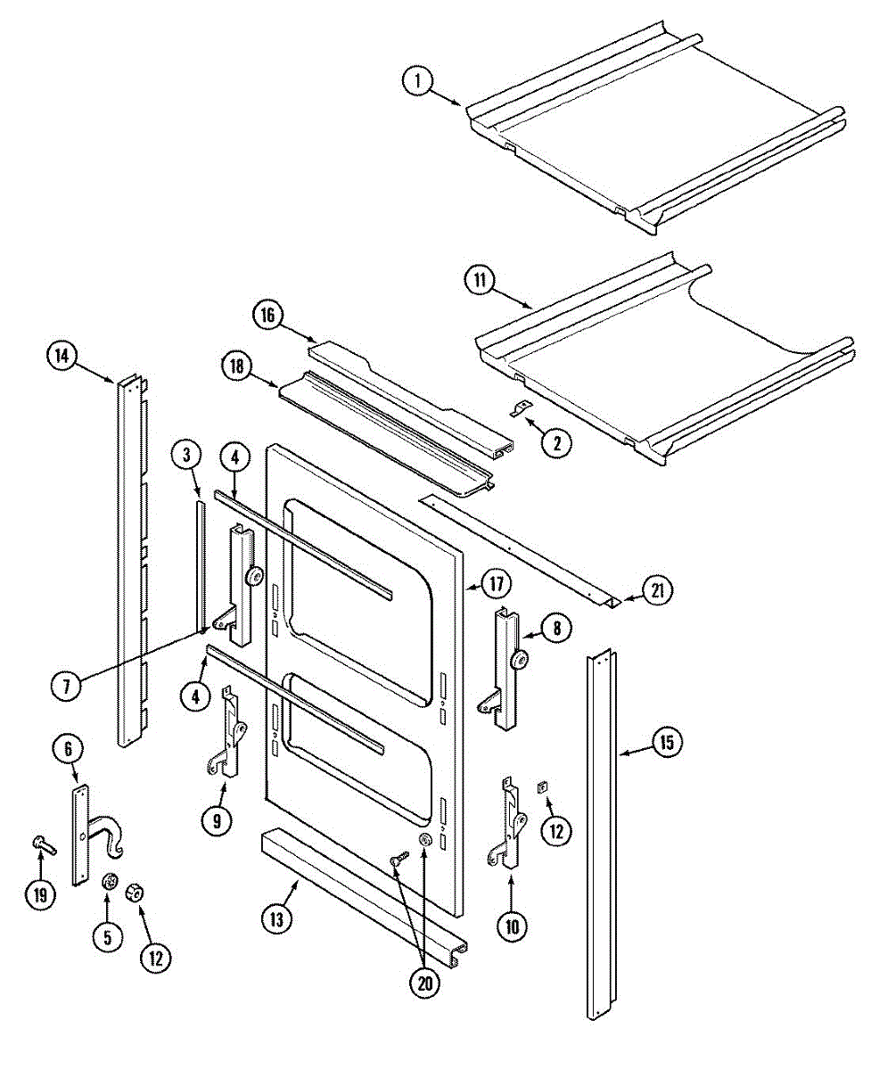 Horizontal oven door seal for top and bottom edges. Replace when worn to restore even heating and efficient baking. Hooks into slots on door frame.