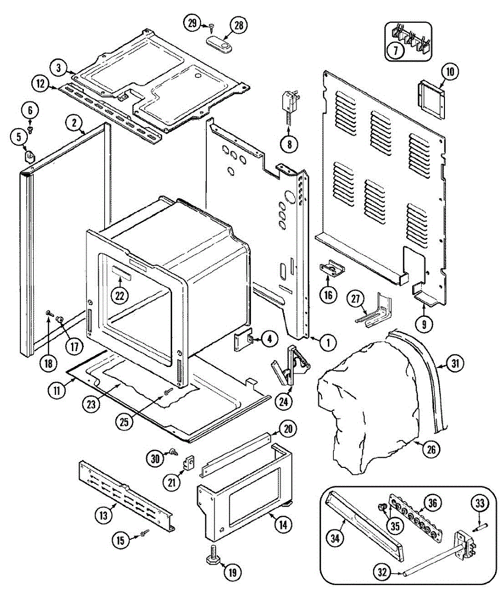 Anti-tip bracket bolts to the floor behind your range to prevent tipping. Replace if missing, bent, or damaged during moving or installation.