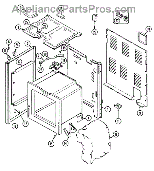 This factory screw secures appliance components to their mounting points. Replace missing, worn, or stripped hardware to restore a tight fit, proper alignment, and quieter operation across the affected assembly.