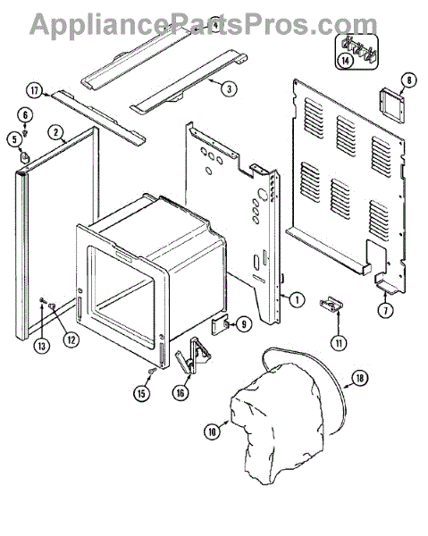 Insulation panel that installs at the back of the oven cavity. Replace if original insulation is cracked, damaged, deteriorated, or missing.
