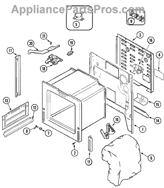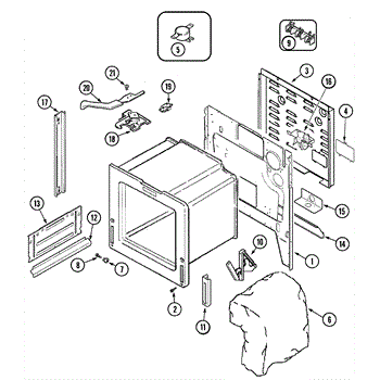 Insulation panel that installs at the back of the oven cavity. Replace if original insulation is cracked, damaged, deteriorated, or missing.