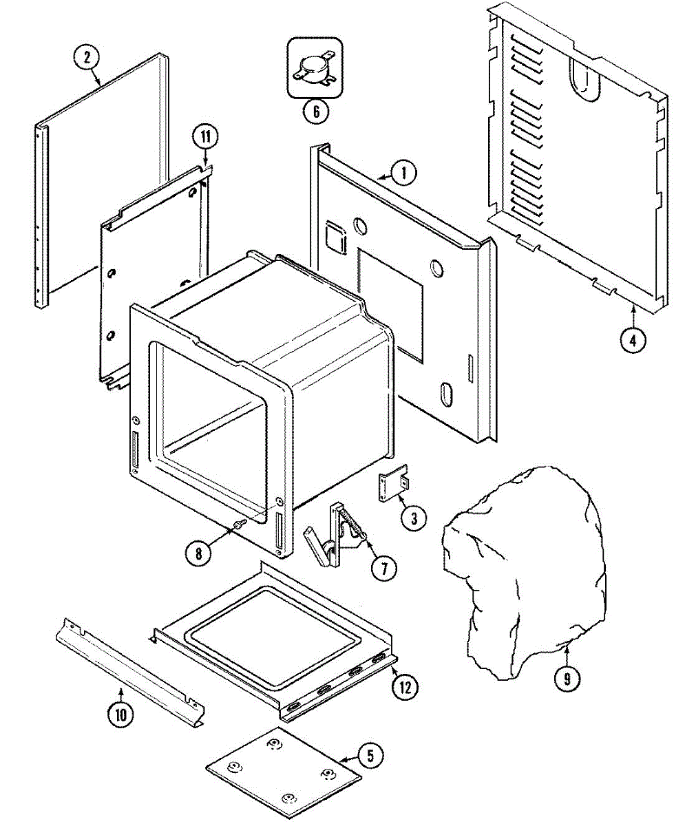 Insulation panel that installs at the back of the oven cavity. Replace if original insulation is cracked, damaged, deteriorated, or missing.