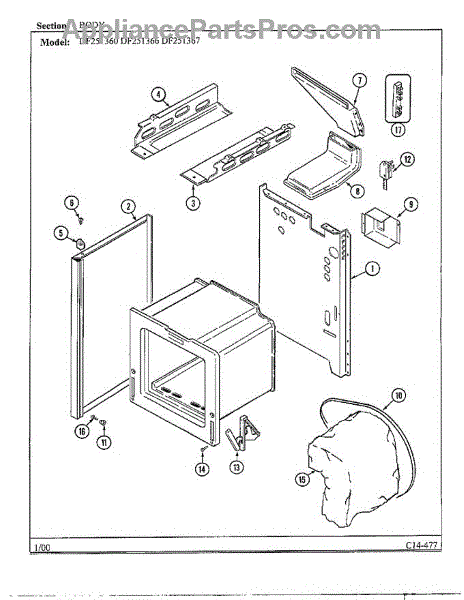This factory screw secures appliance components to their mounting points. Replace missing, worn, or stripped hardware to restore a tight fit, proper alignment, and quieter operation across the affected assembly.