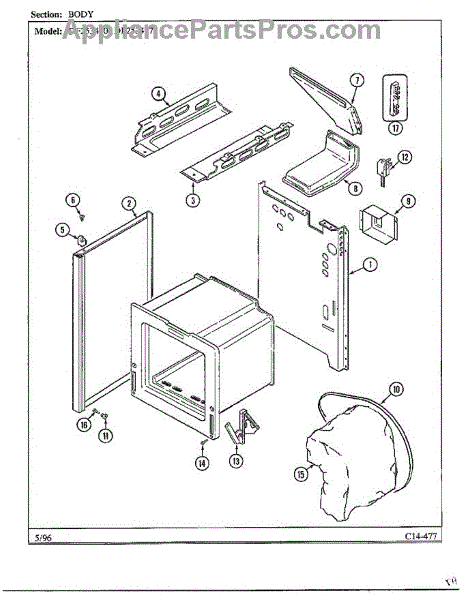 This factory screw secures appliance components to their mounting points. Replace missing, worn, or stripped hardware to restore a tight fit, proper alignment, and quieter operation across the affected assembly.