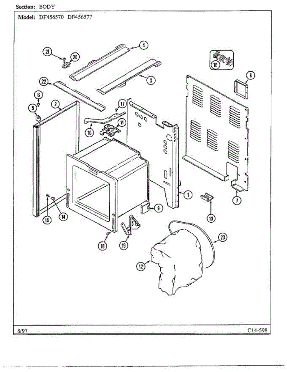 Insulation panel that installs at the back of the oven cavity. Replace if original insulation is cracked, damaged, deteriorated, or missing.
