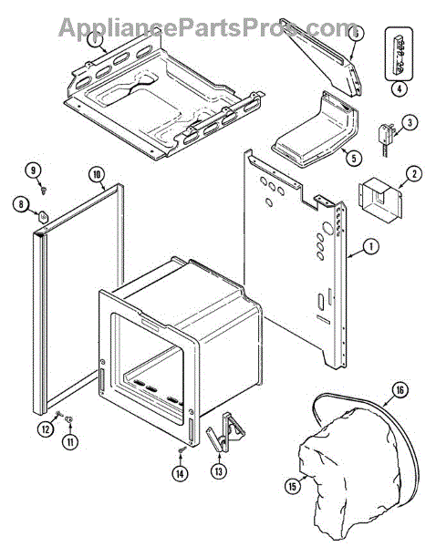 This factory screw secures appliance components to their mounting points. Replace missing, worn, or stripped hardware to restore a tight fit, proper alignment, and quieter operation across the affected assembly.