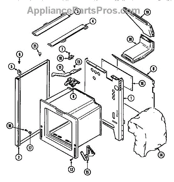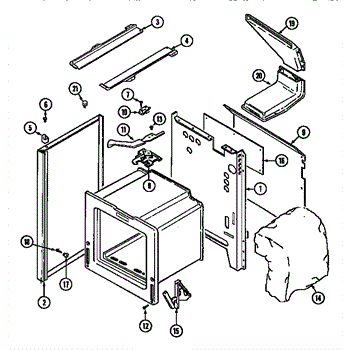 This burner box is the oven's metal housing that holds and positions the bake/broil burners and channels gas flames for proper heating. Replacing a damaged box restores safe flame direction and consistent oven operation. What it does