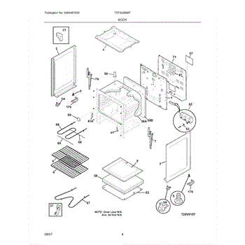 This oven insulation surrounds the oven cavity to retain heat and protect nearby components and cabinetry. Replacing a burnt or deteriorated insulation blanket restores temperature stability and helps keep exterior surfaces cooler on your range during cooking.
