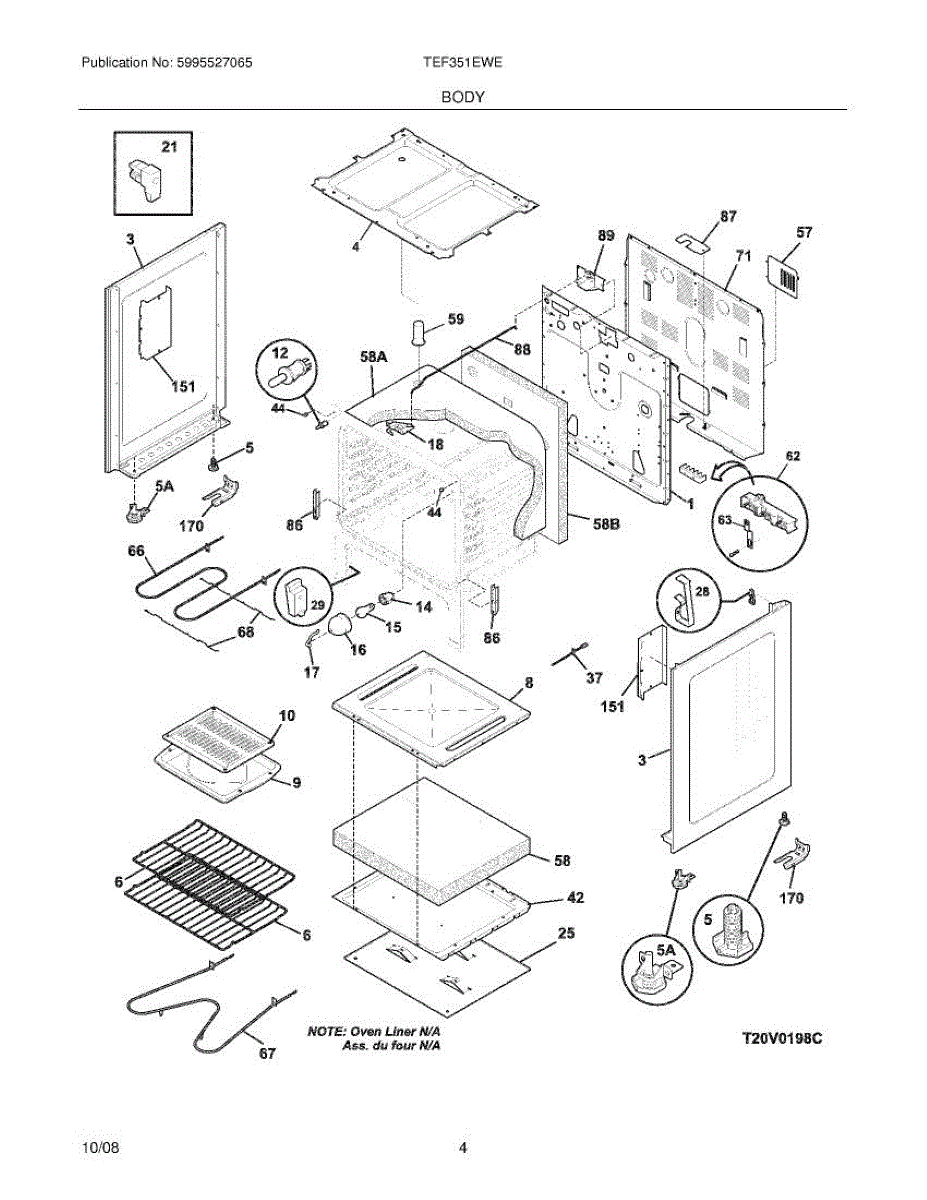 Molded insulation liner that fits inside the range oven cavity. Replace if yours is damaged, compressed, or missing to restore proper heat containment.