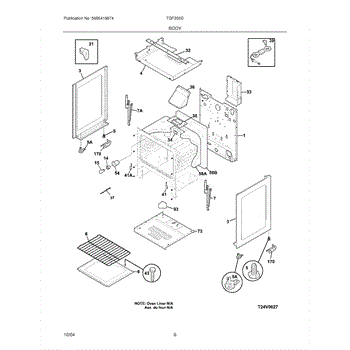 Side panel for electric and gas ranges. Replaces damaged, cracked, or missing exterior panels. Installs on the body side to restore appearance.
