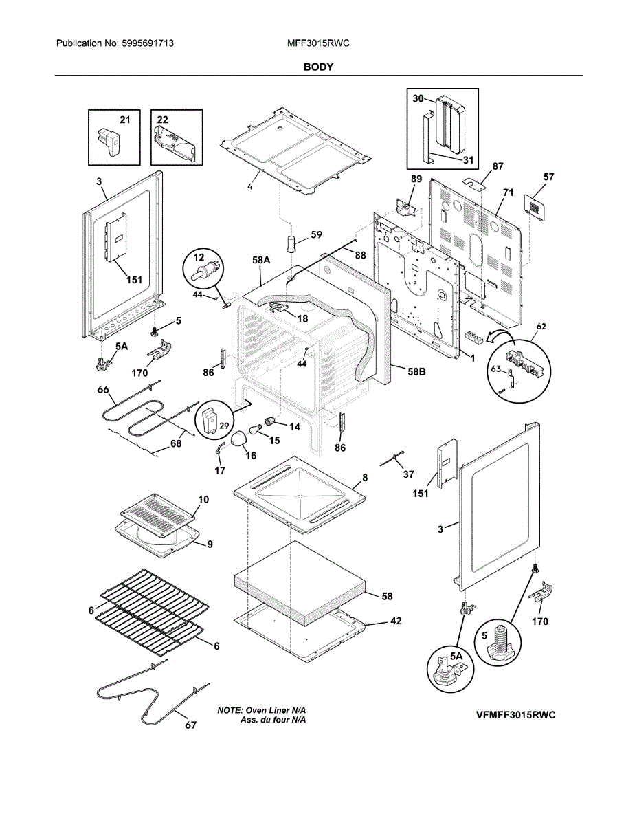 Molded insulation liner that fits inside the range oven cavity. Replace if yours is damaged, compressed, or missing to restore proper heat containment.