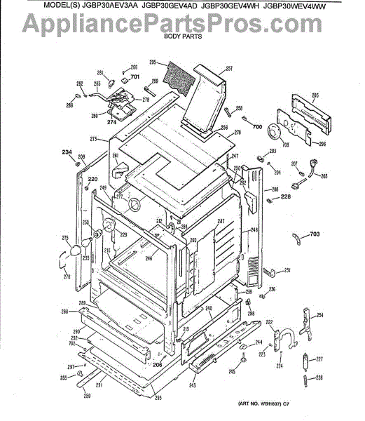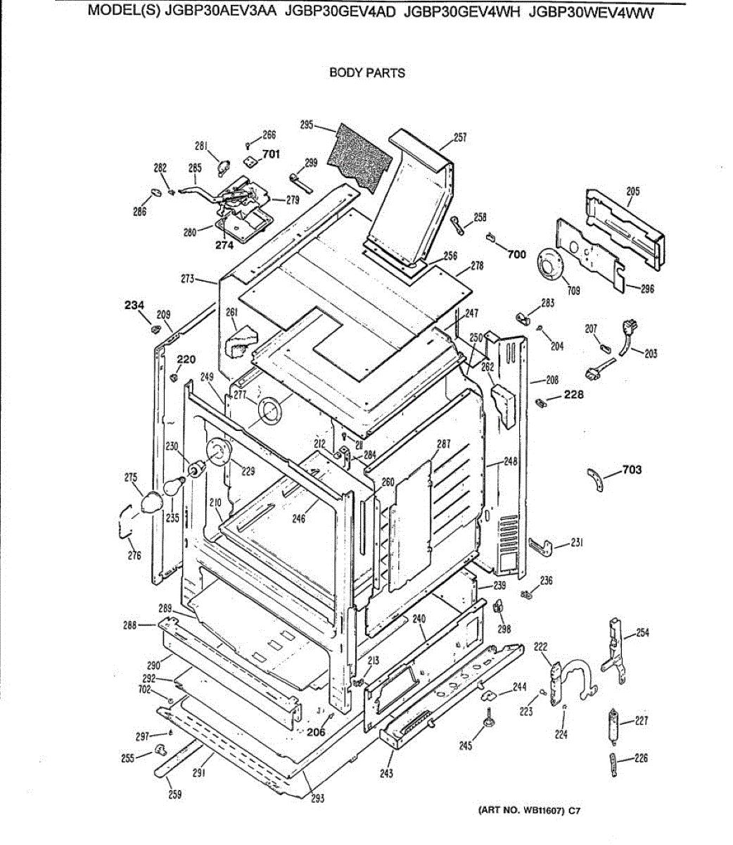 Parts for Ge JGBP30AEV3AA: 03 - Body Parts