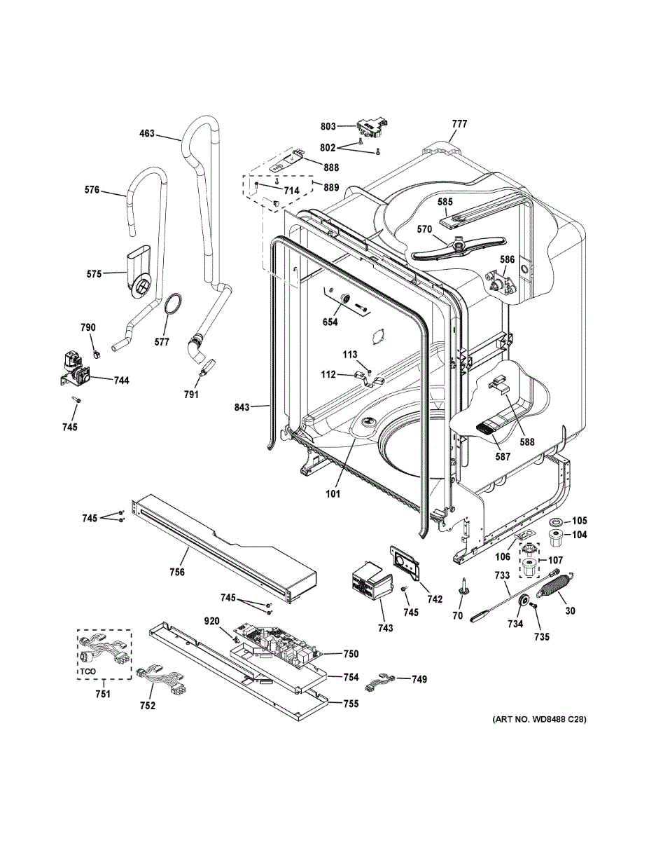 The Electronic Control Board is an OEM part for GE dishwashers. As the central processing unit, it monitors and orchestrates all washing functions including temperature, spray arms, and the precise dishwasher cycles.