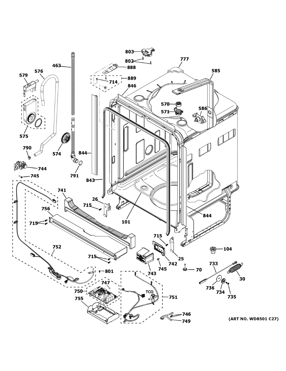 A bad DC wire harness assembly can lead to electrical malfunctions or failures within your dishwasher. Causes of a bad wire harness can include wear and tear over time, exposure to moisture or heat, or damage.