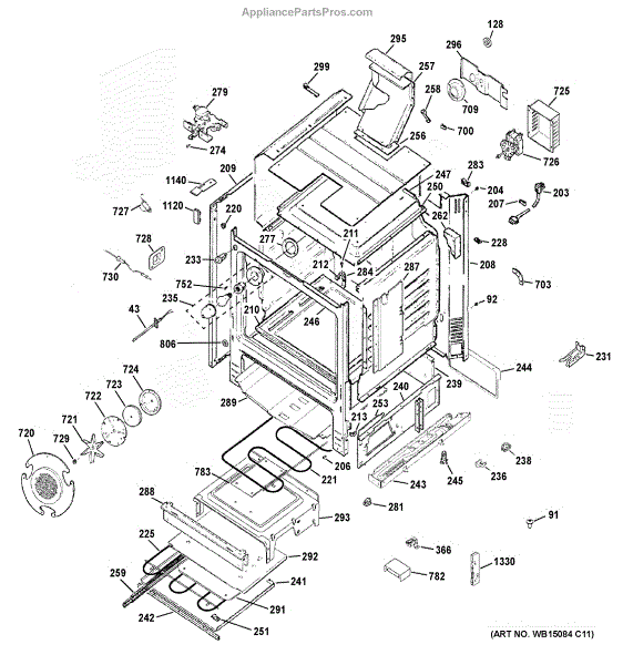 The Bottom Oven and Deflector Assembly is an OEM part for GE ranges. This assembly features both the bottom oven cavity and heat shield deflector above it. It allows for simultaneous cooking on two racks while protecting cabinets from excessive heat.