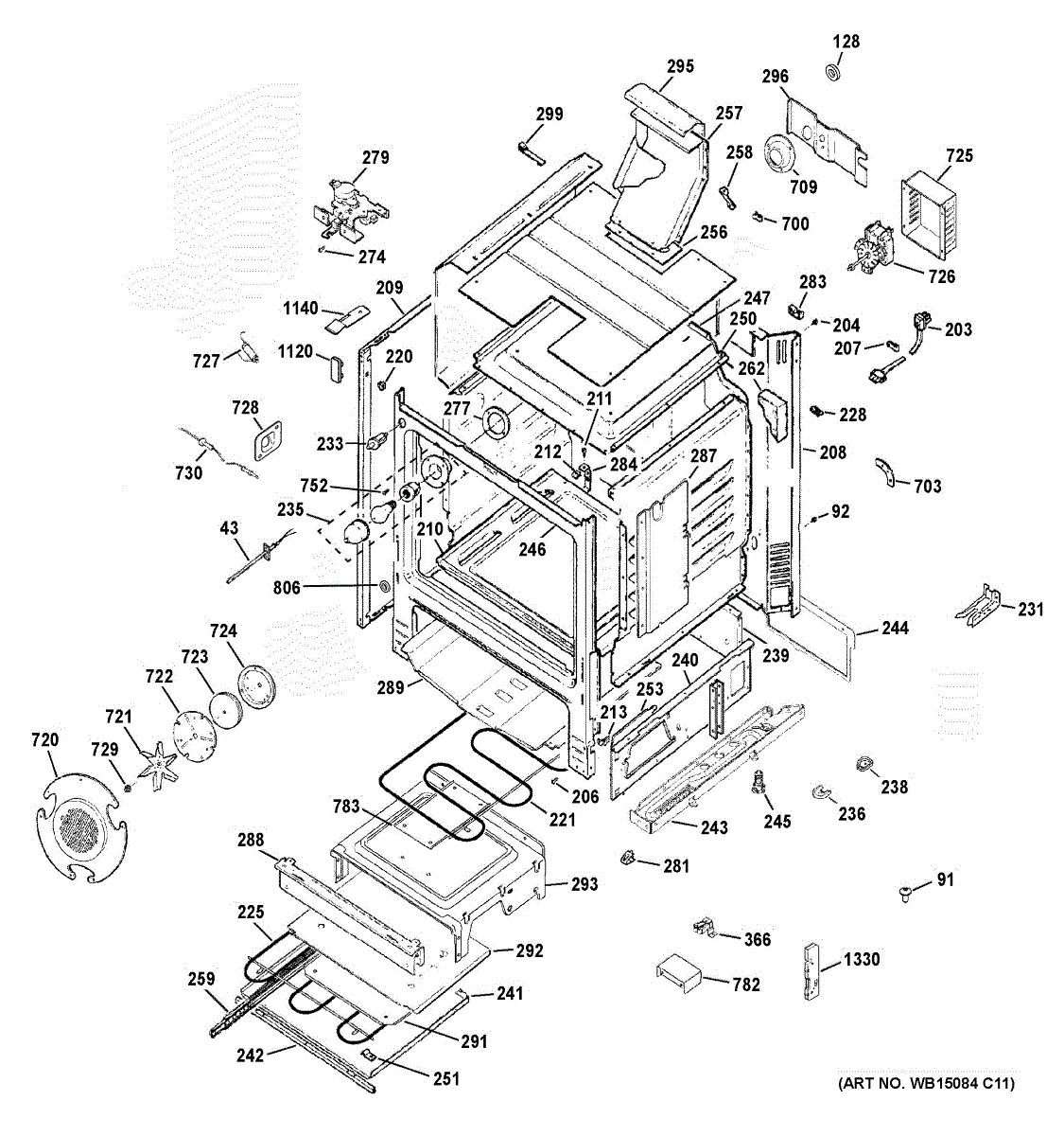 The Bottom Oven and Deflector Assembly is an OEM part for GE ranges. This assembly features both the bottom oven cavity and heat shield deflector above it. It allows for simultaneous cooking on two racks while protecting cabinets from excessive heat.