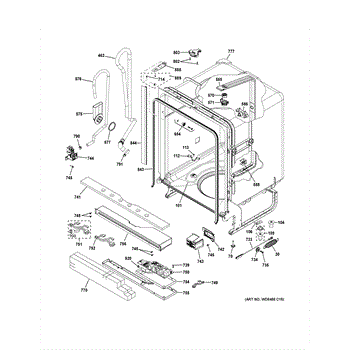 The Harness ASM DC is an OEM part for GE dishwashers. As the main wiring harness, it connects the control board to other components like the motor, sensors, and heating elements.