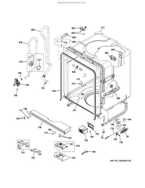 The Harness ASM DC is an OEM part for GE dishwashers. As the main wiring harness, it connects the control board to other components like the motor, sensors, and heating elements. Causes of a bad Harness ASM DC can include cuts, cracks, or failure in the insulation over time which can cause shorts. Rodent damage is also common. Symptoms of a bad wiring harness include: