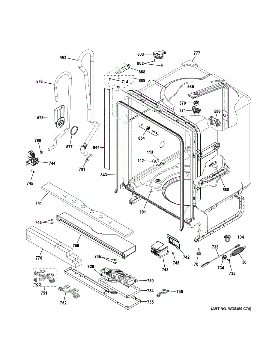 Dishwasher won't start or has electrical issues? The main wiring harness connects the control board to motor, sensors, and heating elements.