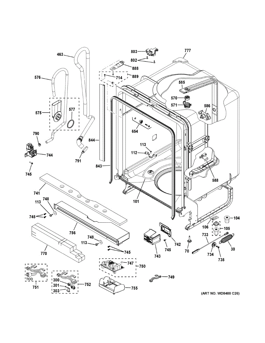 Dishwasher won't start or has electrical issues? The main wiring harness connects the control board to motor, sensors, and heating elements.