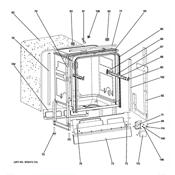 Insulation pad that wraps around the dishwasher tub to reduce noise and retain heat. Replace if torn, deteriorated, or missing for quieter operation.