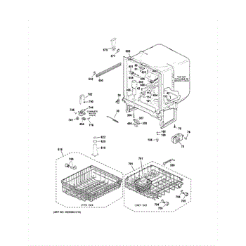 Lower dishrack assembly for dishwasher bottom level. Holds plates, pots, and pans during wash cycles. Replace if rusted, cracked, or tines broken.