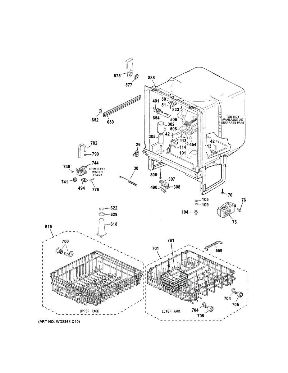 Prevents water leaks at the dishwasher door corners during wash cycles. Replace if you notice leaking along the bottom of the door. Clips onto tub rail.
