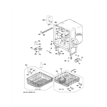 Lower dishrack assembly for dishwasher bottom level. Holds plates, pots, and pans during wash cycles. Replace if rusted, cracked, or tines broken.