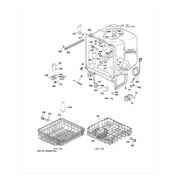 Insulation blanket that wraps around the dishwasher tub to reduce noise and maintain temperature. Replace if damaged, torn, missing, or contaminated.