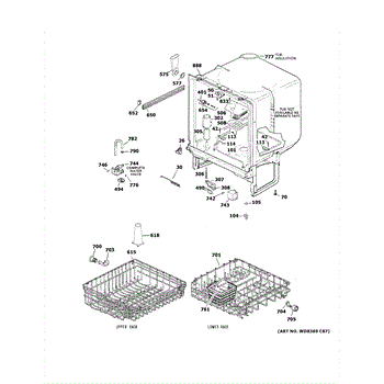 Insulation blanket that wraps around the dishwasher tub to reduce noise and maintain temperature. Replace if damaged, torn, missing, or contaminated.