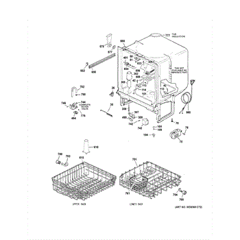 The Upper Rack is an OEM replacement part for GE dishwashers. It provides movable shelf space along the top of the dishwasher interior for washing plates, bowls, and other dishes. The shelves feature an adjustable design that accommodates various sizes and configurations of dishware. Causes of failure include normal wear and tear, accidental impacts that damage shelves or cleaning chemicals stripping away protective coatings. Symptoms of a bad upper rack can include: