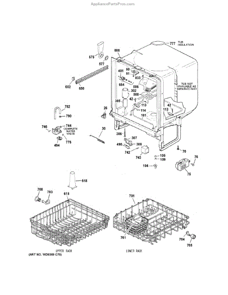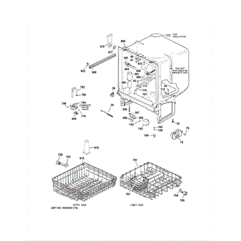 Insulation pad that wraps around the dishwasher tub to reduce noise and improve heat retention. Replace if torn, compressed, missing, or no longer effective.