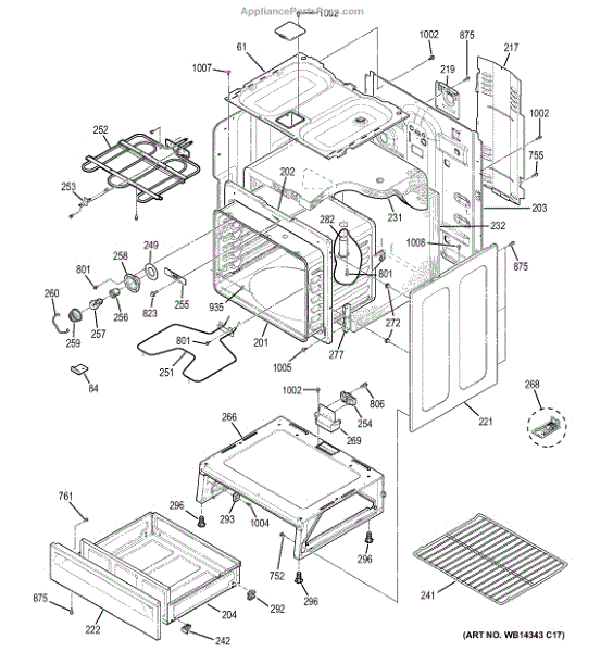 The Rear Door Support is an OEM replacement part for GE ranges. Located at the base of the range, this bracket provides weight-bearing support for the lower oven drawer. It facilitates smooth extension and retraction of the drawer. Causes of faulty support can include cracks or fractures developing over extended use, worn joints unable to sustain drawer weight, or misalignment from repeated opening/closing stress. Symptoms of a bad support include: