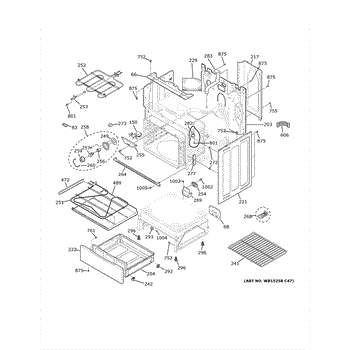 The Rear Door Support is an OEM replacement part for GE ranges. Located at the base of the range, this bracket provides weight-bearing support for the lower oven drawer. It facilitates smooth extension and retraction of the drawer. Causes of faulty support can include cracks or fractures developing over extended use, worn joints unable to sustain drawer weight, or misalignment from repeated opening/closing stress. Symptoms of a bad support include:
