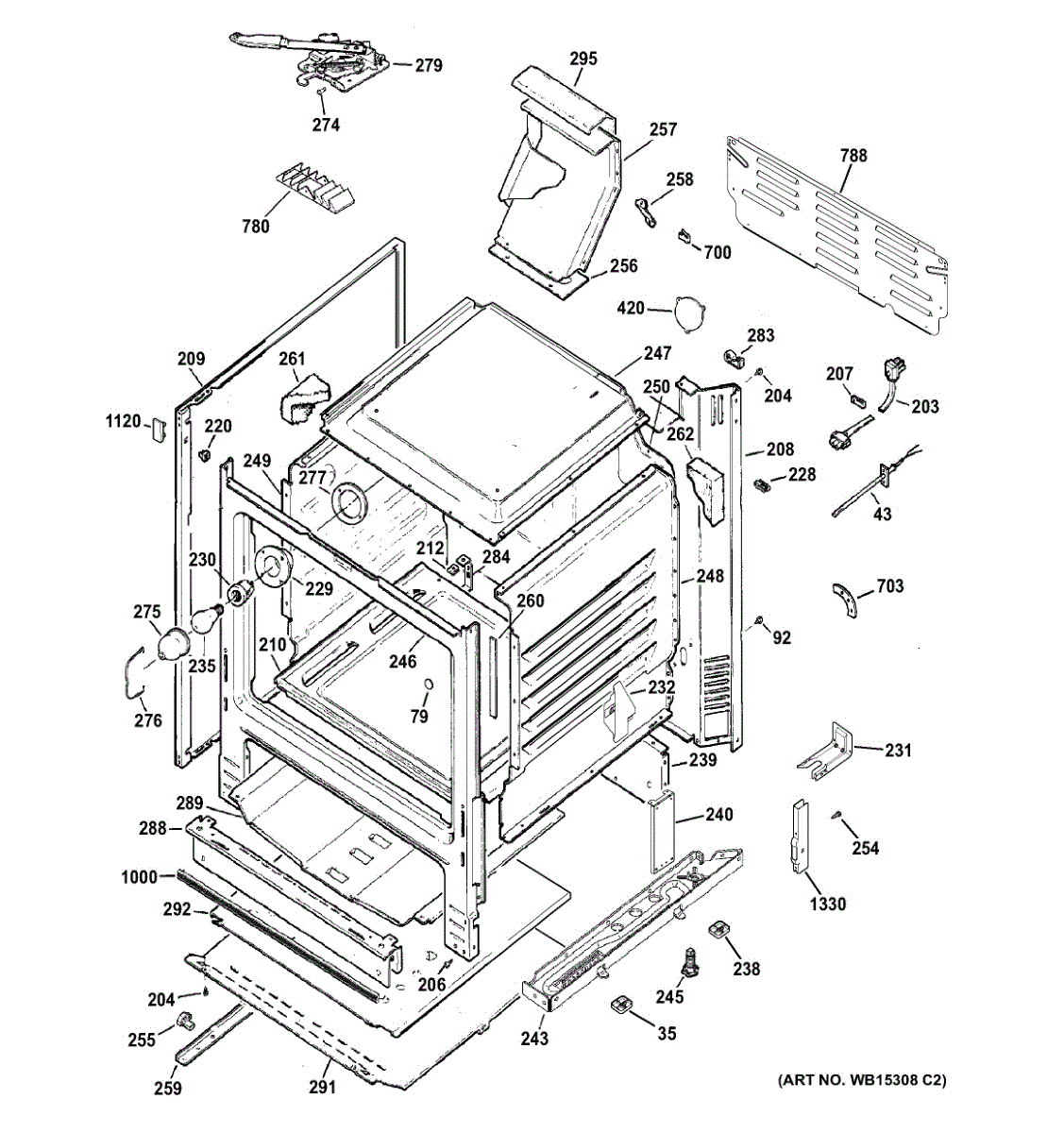 Mounting bracket secures oven components inside your range. Replace if bracket is bent, cracked, broken, or missing to restore proper structural support.