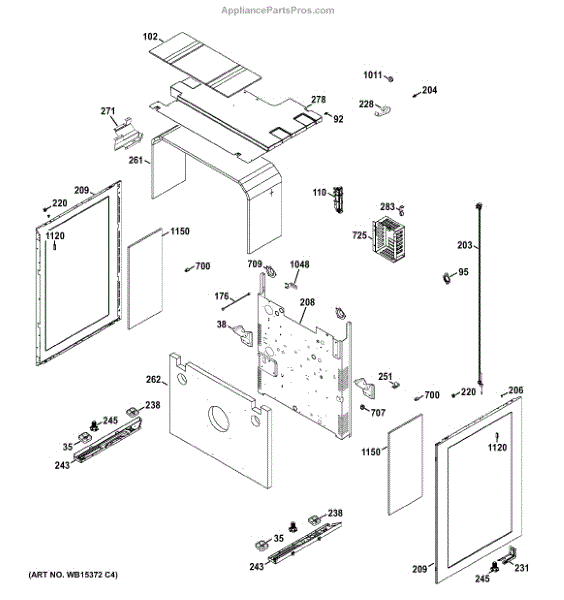 This support base secures and stabilizes the appliance cabinet/frame so doors and components align properly and operate smoothly. Replaces worn or broken right-side lower support to restore correct support and fit. What it does: