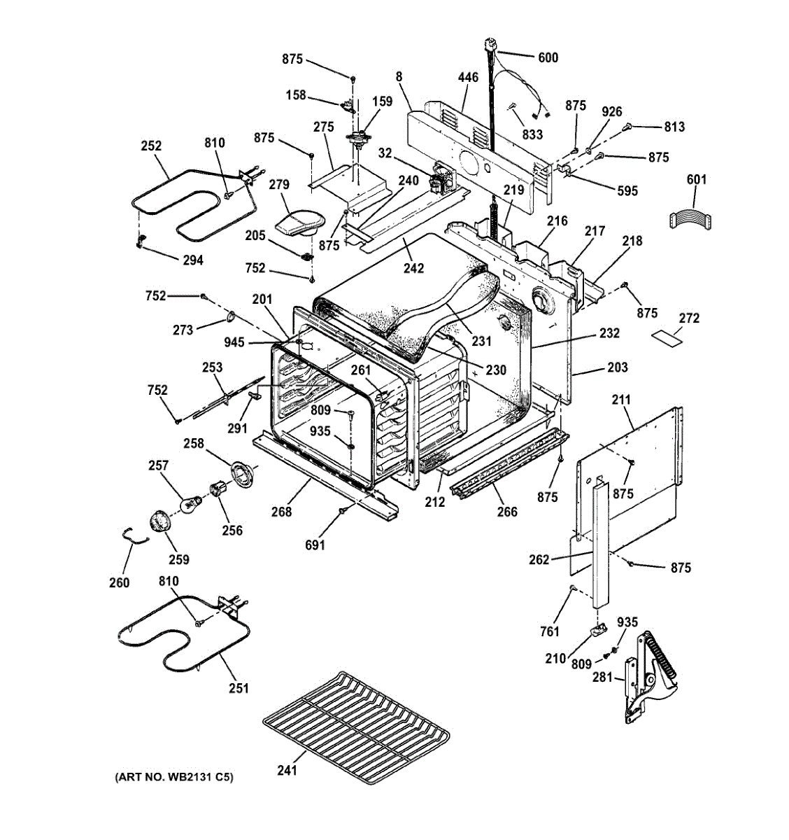 This Back main is the oven's rear chassis panel that supports internal components and protects wiring. It restores structural support and helps prevent contact with hot or moving parts for safe operation. What it does: