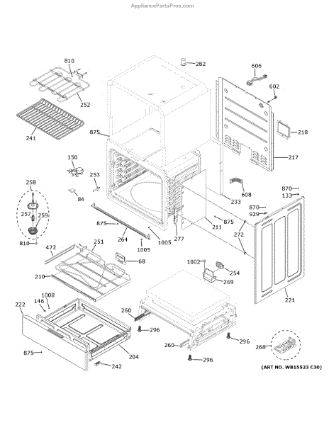 The slide and bearing assembly is an OEM part for GE ranges. It is responsible for providing smooth and effortless movement of the oven drawer, allowing for access and storage.