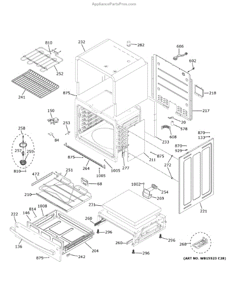 The slide and bearing assembly is an OEM part for GE ranges. It is responsible for providing smooth and effortless movement of the oven drawer, allowing for access and storage.
